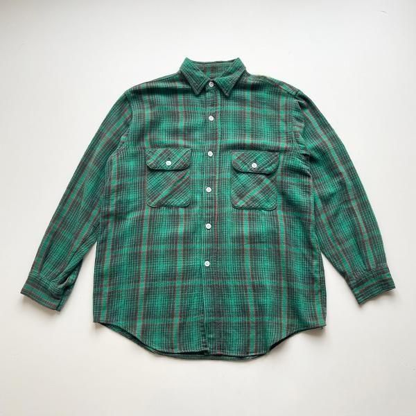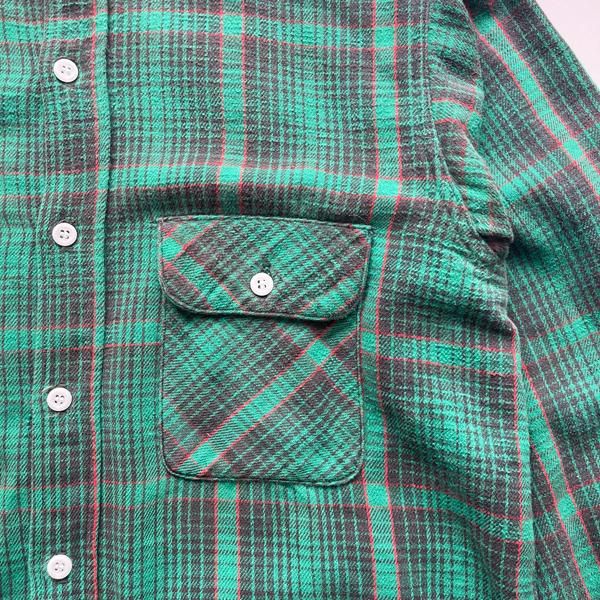 1960's 『UNKNOWN』COTTON FLANNEL CHECK SHIRTS GREEN SIZE 表記ナシ (S〜M)